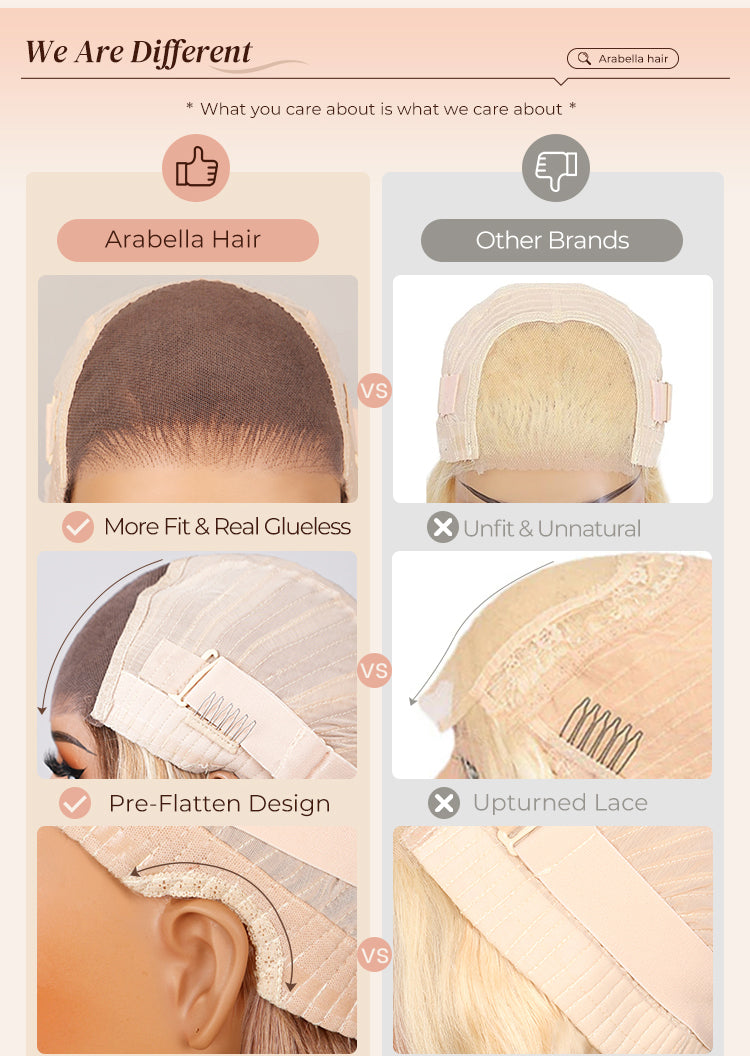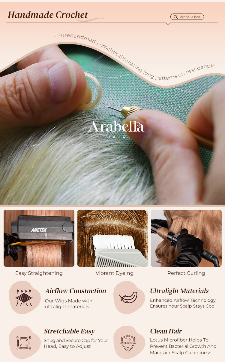 A: At Arabella Hair, we put a lot of effort into designing and creating our products. We use high-quality 100% real human hair in our wigs and ensure that they are crafted with precision and care. Our wigs undergo strict quality control checks to ensure that they meet our high standards.