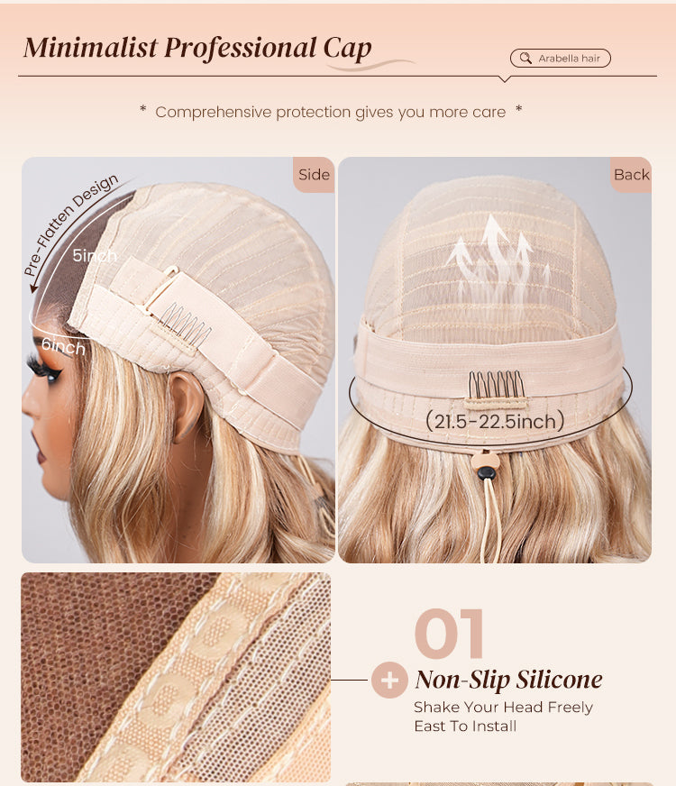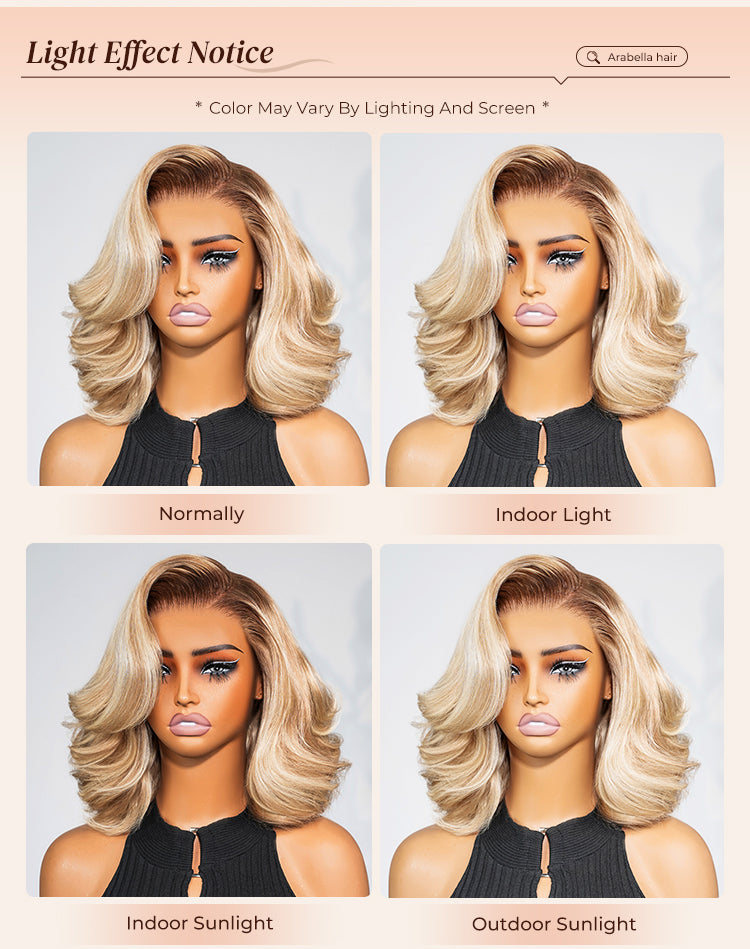 Beginner Friendly Buy 2, 30% Off Arabella 6x5 invisible knots Glueless Loose Body Wave Bob Wig Pre-cut Lace Brown Blonde Ombre Beginner Friendly